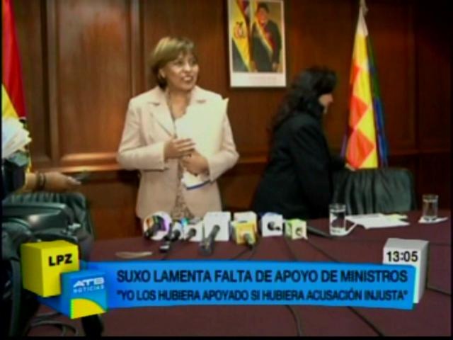 La Paz.- La Ministra de Lucha Contra la Corrupción, Nardi Suxo brindó una conferencia de prensa en la cual esclareció por qué no compareció ante los medios de comunicación hace varias semanas. De acuerdo a la información ella se encontraba en misión oficial en otro país.