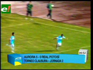 Ni la lluvia y las condiciones climáticas adversas evitaron que Aurora obtenga tres puntos a costa de un desconocido Real Potosí, al cual derrotó por 5-0 en el encuentro disputado anoche en el estadio Félix Capriles, válido por la segunda fecha del torneo Clausura.