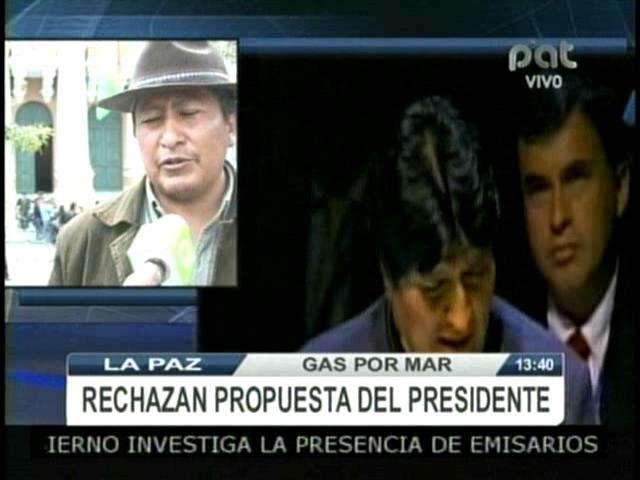 “El presidente Evo Morales se ha equivocado es un planteamiento descabellado, prácticamente es como si estuviera haciéndose la burla de todos los bolivianos y sobre todo haciéndose la burla de tantos heridos, más de 400 heridos, más de 85 muertos de septiembre y octubre de 2003, donde la agenda de septiembre, octubre de 2003 se ha escrito con sangre”. (PAT)