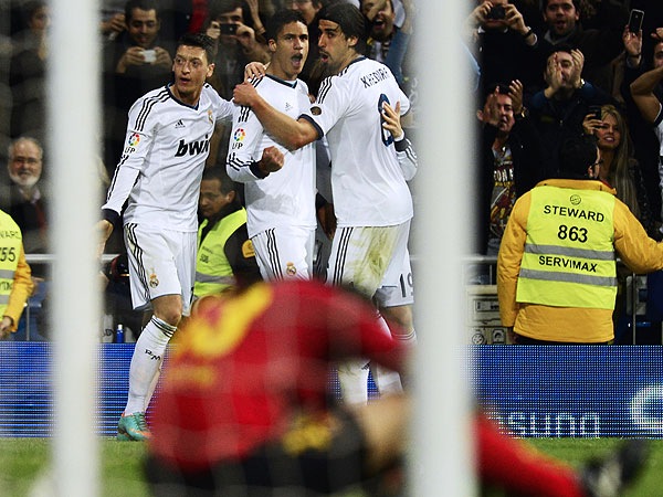 En el minuto 81, luego de una sensacional asistencia del alemán Mesut Özil con pelota en movimiento, se elevó Raphael Varane, titular ante la ausencia de Sergio Ramos por sanción y Pepe por lesión, para anotar el 1-1 que deja abierta la eliminatoria para la vuelta en Camp Nou el próximo 27 de febrero.