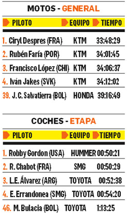 Destacado. Acabó 13.° en la undécima etapa, su mejor ubicación desde que corre esta prueba. Evo dice que Bolivia ‘está cerca’ de ser parte del Dakar 2014.