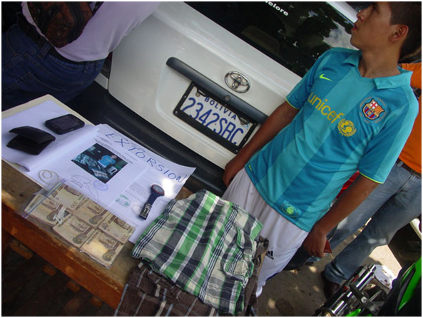 El aprehendido será presentado hoy ante un juez cautelar para ser imputado por delito de extorsión. Como prueba se adjuntará casi Bs 4.000 que se le encontró en su poder después de haber recibido como pago de una persona, además de otros objetos.