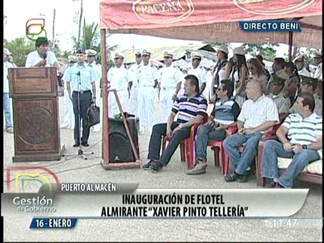 “La Armada Boliviana pone en servicio el Bravo Tango 01 Almirante Javier Pinto Tellería en este día tan importante, en un momento histórico donde el apoyo de su Gobierno y el concepto estratégico de su superioridad han sido decisivos para la concretización de este proyecto que causará efectos positivos en el desarrollo económico de la Amazonia”. (Patria Nueva)