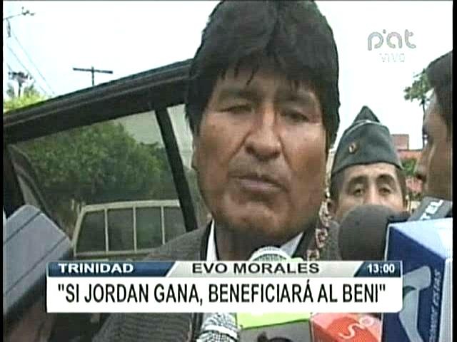 Trinidad, Beni.-En presidente Evo Morales se refirió a las elecciones en la visita relámpago al departamento del Beni y dijo que si la candidata del MAS gana no se beneficiará a un partido político, se beneficiará todo el Beni.