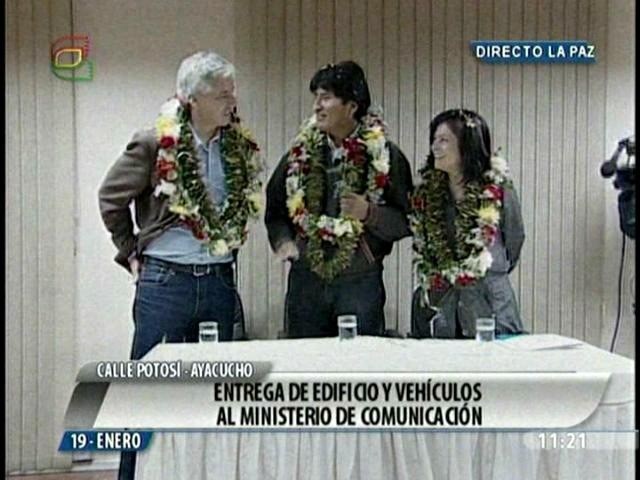 Al concluir el acto el presidente Morales hizo la entrega de las llaves a la ministra de Comunicación. Posteriormente se procedió a la ch’alla tradicional de las nuevas instalaciones así como de los motorizados y equipos.