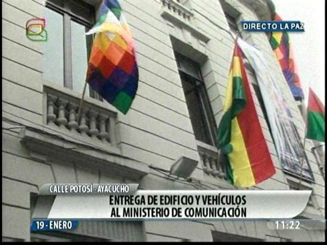 Las diferentes reparticiones del Ministerio de Comunicación, los viceministerios de Política Comunicacional y Gestión Comunicacional, direcciones y oficinas administrativas se instalarán en el inmueble ubicado en la calles Potosí esquina Ayacucho, que consta en una primera planta con 3 pisos y en la parte posterior 11 niveles.