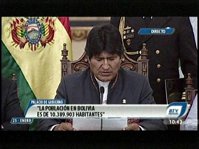 evo.datos4 La Paz.- El presidente del Estado, Evo Morales, presentó los datos registrados en el Censo Nacional de Población y Vivienda el pasado 21 de noviembre del año pasado. Manifestó que en todo el territorio nacional la población llega a 10.389.903 personas.
