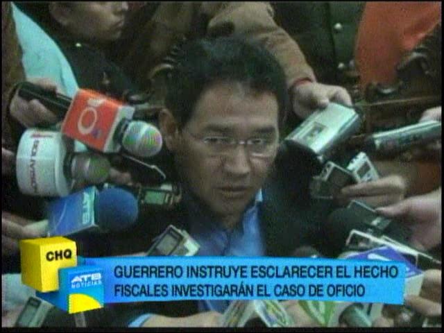 “Aquí está el instructivo, tengo aquí el instructivo, hoy por la mañana hemos instruido al fiscal departamental, al Dr. Pacheco, que en estricto cumplimiento de las atribuciones que tenemos nosotros, de acuerdo a la ley Orgánica del Ministerio Público, iniciar las acciones legales correspondientes. Hemos tomado conocimiento, hasta ahora por lo menos entendemos que no hay una denuncia formal, pero nosotros de oficio, este fiscal General ha instruido hoy al fiscal departamental que tome todas las acciones correspondientes en el marco de las atribuciones que tenemos frente a esos hechos que son de conocimiento público y que serán investigados por la Fiscalía Departamental de Chuquisaca”. (Fides)