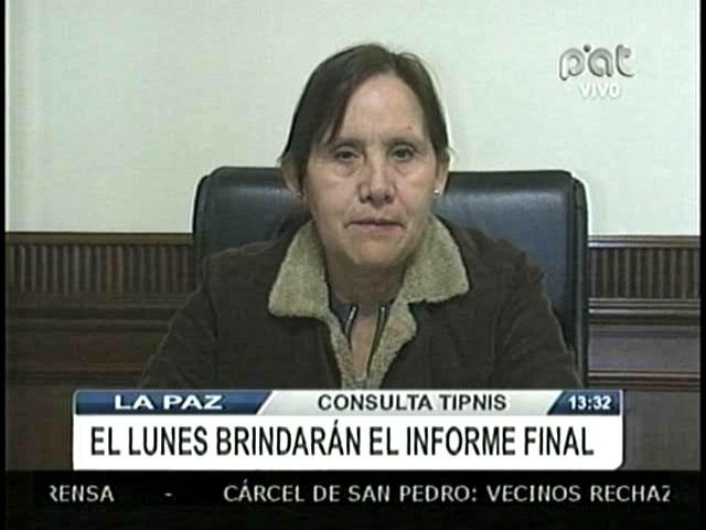 Tv noticias. La presidenta del TSE, Willma Velasco, ratificó la entrega del informe final de la consulta realizada en el Tipnis.