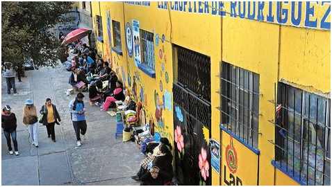 Educación. En la Av. Montes formaron dos filas, una para kínder (foto) y otra para la escuela.