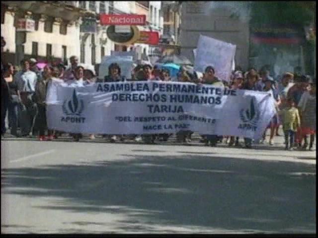 Tarija.- La Asamblea de Derechos Humanos de Tarija a la cabeza de su presidenta a nivel nacional Yolanda Herrera en la víspera protagonizaron una ruidosa marcha de protesta que recorrió varias arterias de la capital pidiendo a las autoridades departamentales y nacionales mayor asignación de recursos económicos al área de seguridad por los constantes robos, como ocurrió con la Oficina de Derechos Humanos en la Tarija en pasados días.