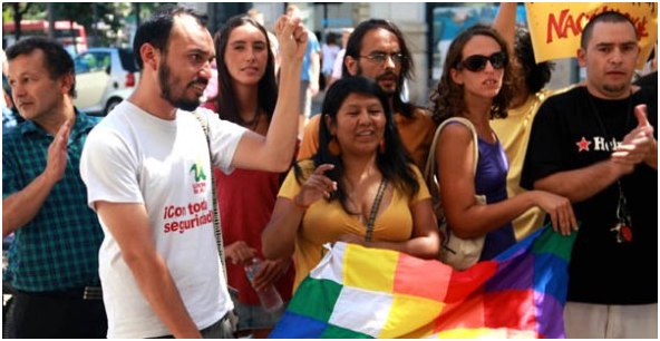 MIGRANTES. Un grupo de bolivianos, que radica en España, participa en un acto. – Gregory Beltrán La Prensa