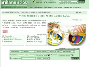No es un acto de generosidad, ya que los precios son elevados en relación al artículo ofrecido. Lo que sucede es que para evitar las irregularidades, se publican avisos de bolígrafos, chinchetas, clips, mecheros o sobres que traen de regalo el acceso a ver el duelo entre Cristiano Ronaldo y Lionel Messi. Un bolígrafo a 250 dólares, dos mecheros a 480 dólares o un par de clips a 270 dólares son algunos de los precios de los artículos que, no casualmente y de manera solidaria, son acompañados por entradas para asistir a la primera semifinal de la Copa del Rey Esta competición abarata el costo del ticket en comparación con uno que corresponde a un duelo de Liga o de Champions League.