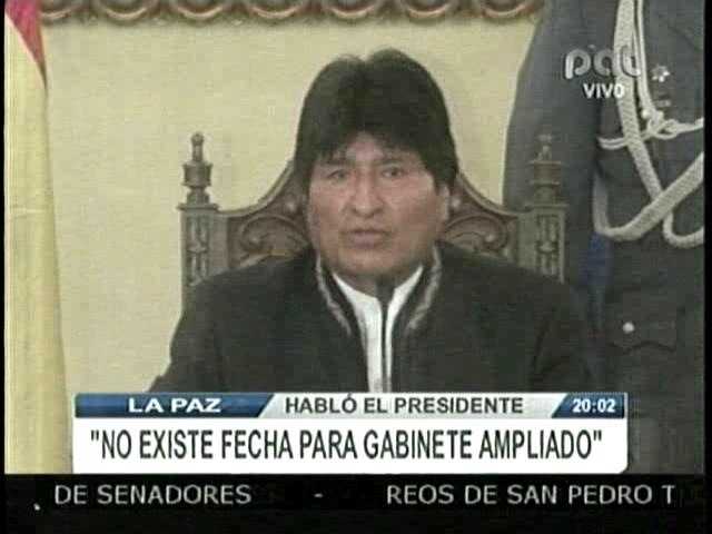 La Paz.- El presidente Evo Morales informó que aún no existe fecha para la realización del gabinete ampliado con la participación de organizaciones sociales. El primer mandatario sostuvo que debido al excesivo trabajo realizado en estas semanas no se pudo llevar adelante este evento.