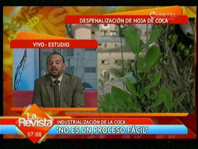 Tv noticias. “El reingreso a la Convención no es que se da carta blanca a que se masifique la siembra de coca. La industrialización no es un proceso fácil”, señala representante de la ONUDC.