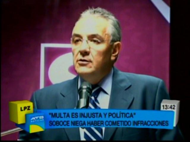 El gerente general de Soboce, Armando Gumucio, manifestó que Soboce se vio obligada a pagar la multa millonaria para que la Autoridad de Fiscalización de Empresas acepte un recurso de revocatoria.