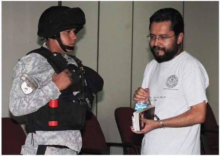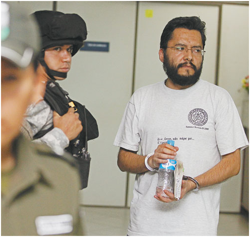 Ref. Fotografia: Niegan su libertad. Boris Villegas aparece celosamente custodiado. Dijo que el ministro Romero debería estar con ellos.