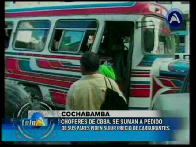 Cochabamba.- Diferentes organizaciones del país se manifestaron en rechazo al incremento de pasajes que promueve la Confederación de Transportistas de Bolivia, ahora con el anuncio de un paro movilizado, con bloqueo de carreteras de 24 horas, para la semana que viene. Las Centrales Obreras Departamentales y las juntas vecinales aseguran que con paro o sin paro no permitirán el alza de pasajes.