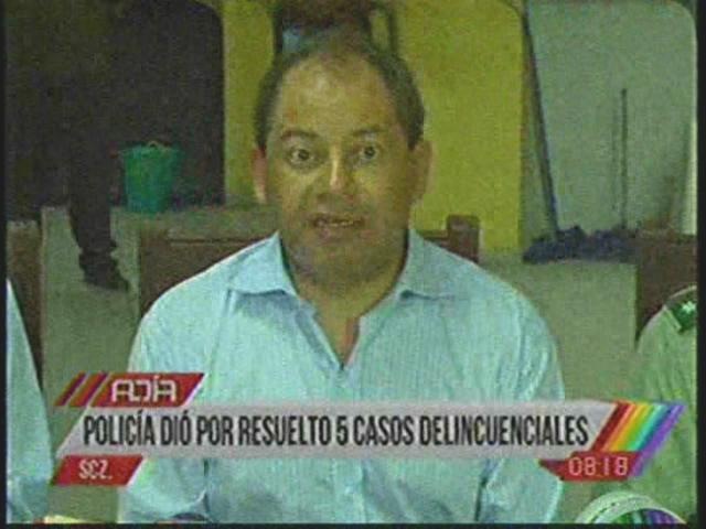 La Policía Departamental dio por resuelto cinco casos delincuenciales suscitados en estos últimos días, entre ellos José Luís Mendoza Arancibia, quien estuvo implicado en el auto robo de la empresa Ceresis, según el viceministro, Jorge Pérez.