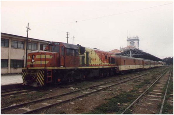 LA LOCOMOTORA GE U20 DT #13104 CON VAGONES EN LA RUTA ARICA A LA PAZ, EL AÑO 1991.