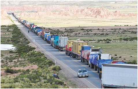 El 10 de enero, la Cámara Departamental de Transporte de La Paz solicitó a la Aduana Nacional de Bolivia (ANB) que agilice los trámites comerciales en Tambo Quemado, frontera con Chile, donde existían más de 800 camiones parados por problemas técnicos y de personal.