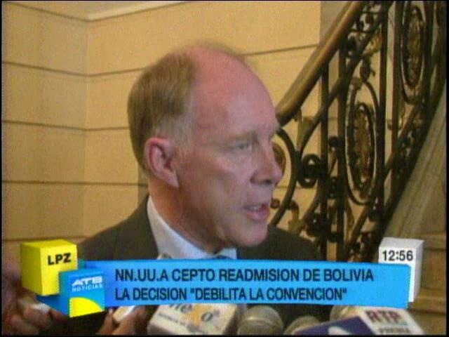 La determinación de las Naciones Unidas, que habría aceptado la reserva de Bolivia sobre el acullico de la hoja de coca y su readmisión a dicha Convención, fue observada por el diplomático, afirma que es un mal precedente.