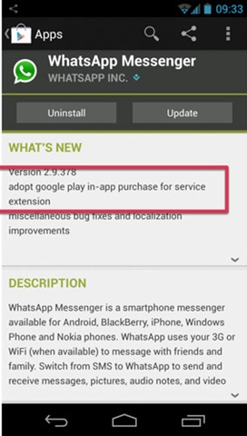 En un intento por adelantarse al desconcierto que pueda causar el actual método de pago cuando un buen número de usuarios de su red se vean obligados a renovar la suscripción, la compañía norteamericana ha actualizado la aplicación deWhatsapp para Android.