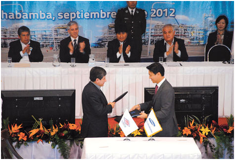 Acuerdo. Firma del convenio para construir la planta de úrea y amoniaco en Bulo Bulo, septiembre 2012. Foto: ABI