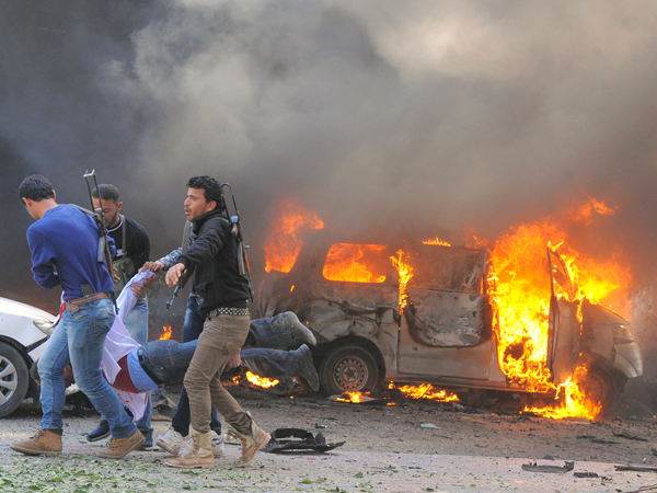 La televisión siria mostró imágenes de bomberos tratando de apagar el fuego en decenas de autos ardiendo, y culpó por el hecho a "terroristas" que luchan contra las fuerzas del presidente Bashar Al Assad.