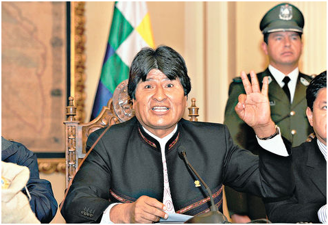 Palacio. Evo Morales, ayer, cuando anunciaba la inauguración de la carretera interoceánica.