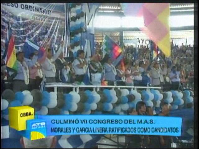 Cochabamba.- Concluyó el congreso departamental del MAS Cochabamba, ratificaron a Evo Morales y Álvaro García Linera como candidato a las próximas elecciones presidenciales.