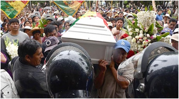 Una segunda marcha recorrió gran parte de la ciudad con el ataúd a cuestas de Margarita Álvarez (19), una premilitar del CITE, y la última joven asesinada en Cochabamba, para demandar justicia.