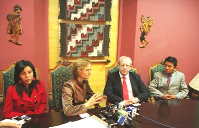 El jefe de la Bancada de Convergencia Nacional en Diputados, Adrián Oliva Alcázar, junto a la presidenta de la Comisión de Relaciones Internacionales Ericka Claure y los diputados nacionales Franz Choque, Juan Luis Gantier, Paola Zapata y Blanca Gonzáles, recibieron a la dignataria para analizar la problemática de los derechos humanos en Bolivia y la situación de los migrantes bolivianos en Europa.