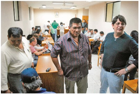 El juez Sixto Fernández deliberó la situación con dos jueces ciudadanos y al final declararon un cuarto intermedio hasta el 18 de febrero para que la audiencia se instale en Santa Cruz.