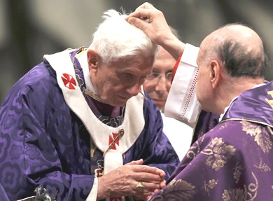 El Papa Benedicto XVI denunció este miércoles la "hipocresía religiosa" y las "actitudes que buscan los aplausos y la aprobación" en la misa del Miércoles de Cenizas, la última de su pontificado antes de su renuncia definitiva el próximo 28 de febrero