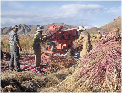 Los cultivos de quinua en Bolivia representan el 46% de la producción mundial de este alimento, del que Perú es el segundo productor mundial con el 42% y Estados Unidos el tercero. En Bolivia las zonas productoras de la variedad de quinua real, con gran demanda, están en Oruro y Potosí.