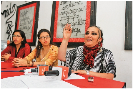 Con parte de la cabeza rapada y trenzas al otro lado, Galindo dijo que esa norma es impulsada por "las virreinas" del masismo, Betty Tejada, de Diputados y Gabriela Montaño, de Senadores, con fines políticos, sin escuchar a agrupaciones como las que ella dirige que hace 20 años están peleando por la defensa de las mujeres maltratadas.