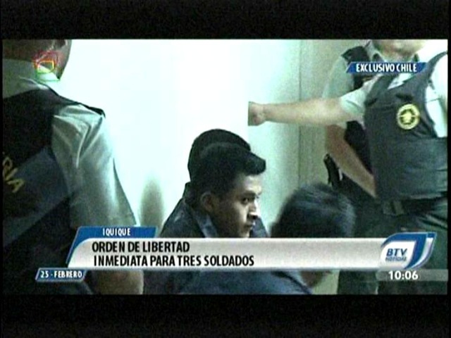 Iquique.-Concluyó la audiencia preparatoria en el Juzgado de Pozo Almonte contra tres soldados bolivianos detenidos en Chile. A la conclusión de la misma el juez determinó sustituir la medida de detención preventiva por una detención domiciliaria diferenciada para Alex Choque y Augusto Cárdenas, además de arraigo nacional y la firma semanal, todos los viernes.