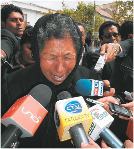 Martha Hannover llegó a la cita a paso lento, vestida de negro, con una pañoleta del mismo color que le cubría la cabeza y con la mirada perdida. Antes de ingresar al templo, fue abordada por unos diez periodistas. Ella se echó a llorar y gritó. “Por favor señor presidente (Evo Morales), que se haga justicia por mi hija, ya pasaron nueve días (…), no puedo más”.