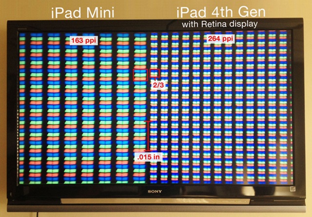Como apuntan nuestros compañeros de Tablet Zona, hasta aquí todo parece un proceso habitual dentro de la creación de un componente, la pantalla, esencial en las tabletas. Sin embargo, el tema adquiere relevancia cuando se ha filtrado el dato de que éstas pantallas Retina podrían tener una densidad de píxeles de 400 ppp. Si esto fuera así, no solo superaría con creces los 162 ppp del actual iPad Mini, sino incluso los 264 ppp del iPad 4. Ahora bien, dado que es imposible contrastar esta información de la propia Apple, tenemos que dudar de ella, sobre todo porque los últimos datos filtrados apuntaban a una mejora, sí, pero de 324 ppp y no de 400 ppp.