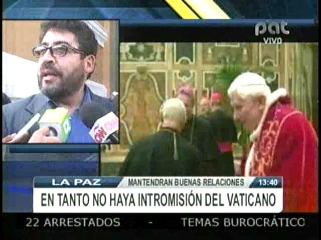 La Paz.-Asambleístas confirman que el Gobierno mantendrá buenas relaciones con el Vaticano en cuanto no haya intromisión de los asuntos internos del país, según el diputado del MAS Marcelo Elío