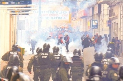 La masiva marcha de periodistas, amigos, familiares y mujeres que exigen justicia ante el cruel asesinato de la periodista Hanali Huaycho fue reprimida por la policía. Con gases lacrimógenos se intentó disipar la movilización para evitar su ingreso a plaza Murillo.