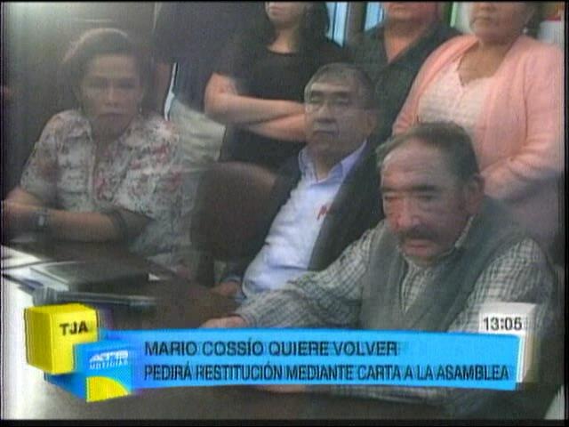 “El señor Mario Cossío tiene que hacerse presente aquí en la Asamblea para pedir su restitución. Ya lo dije y vuelvo a recalcar, ni mediante poder, ni mediante notitas, ni cartas”