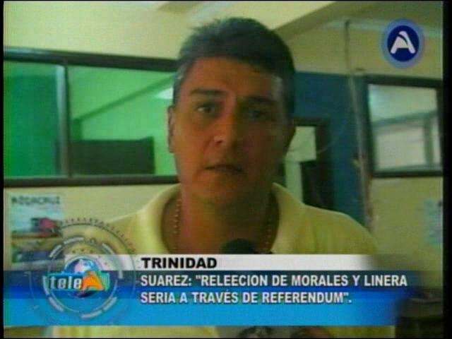 Trinidad, Beni.- El ex gobernador del Beni, Ernesto Suárez, aseguró que Evo Morales podría ser reelecto como presidente de Bolivia y Álvaro García Linera como vicepresidente sólo si se realiza un referéndum.