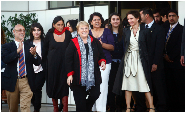 En el aeropuerto, Bachelet fue recibida por una treintena de dirigentes políticos de la coalición opositora de centro izquierda y un centenar de manifestantes, que saludaron su regreso a Chile con el grito "se siente, se siente, Michelle presidente".
