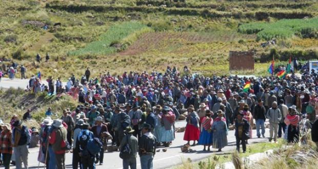 La Paz.- Aproximadamente 5.000 campesinos de 54 comunidades se encuentran movilizados por tercer día consecutivo, pidiendo la construcción del puente turístico trillizo Wiñay Marka, desde la provincia Los Andes hasta Manco Kapac. Advierten con otro tipo de medidas si las autoridades de la Gobernación paceña desoyen su exigencia.