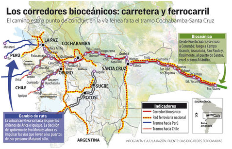 El domingo La Razón difundió una entrevista concedida por el presidente Evo Morales, quien señaló que cuando se pueda salir hacia el Pacífico ningún puerto chileno y peruano va a soportar por sí solo el movimiento de la carga brasileña que son 160 millones de toneladas anuales para exportación, mientras que los puertos chilenos no soportan más de 3 millones de toneladas. También afirmó que se priorizará la construcción de las rutas con destino a la región peruana de Ilo.