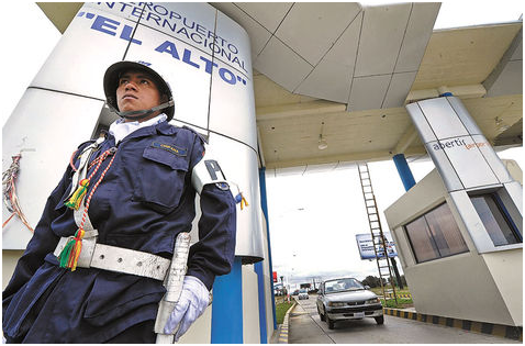 Nacionalización. Un soldado resguarda el ingreso del aeropuerto internacional de El Alto. Foto archivo