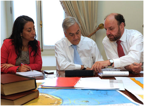 Chile. La portavoz Cecilia Pérez, el presidente de Chile, Sebastián Piñera, y el canciller Moreno. EFE.