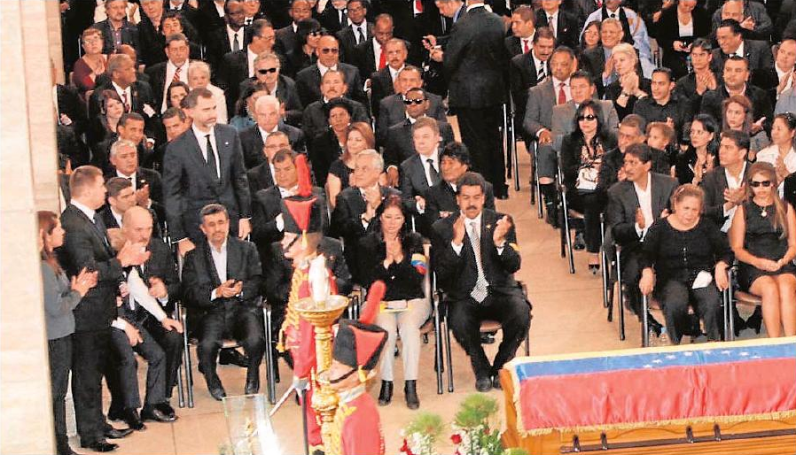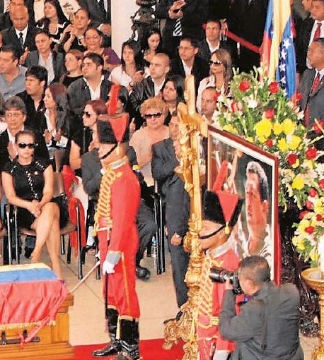 El «heredero», Nicolás Maduro, que aún no había jurado el cargo de presidente, depositó una copia del sable de Simón Bolívar sobre el ataúd de Chávez, totalmente cubierto por la bandera tricolor. Fueron presentados los jefes de Estado y de Gobierno que asistían al acto y que, por turno, hicieron guardia junto al féretro. El primer turno fue para los más firmes aliados de Chávez, el presidente de Cuba, Raúl Castro, el de Bolivia, Evo Morales, y el de Ecuador, Rafael Correa.